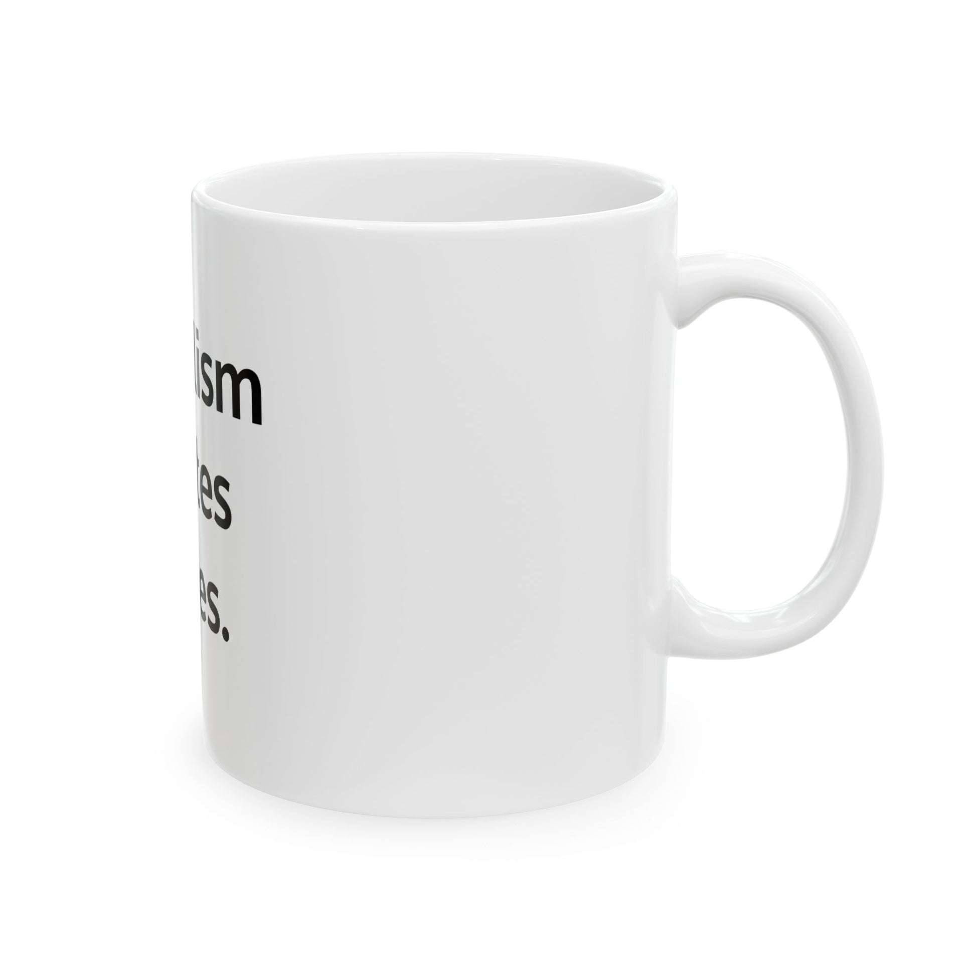This 'Socialism creates slaves.' 11oz mug is perfect for anyone looking for daily motivation and inspiration. The vibrant colors and glossy finish make it a great addition to your morning routine, reminding you to focus on making money and avoiding excuses. Ideal for entrepreneurs, hustlers, and dreamers. Perfect gift for birthdays, Christmas, graduation, or just because.