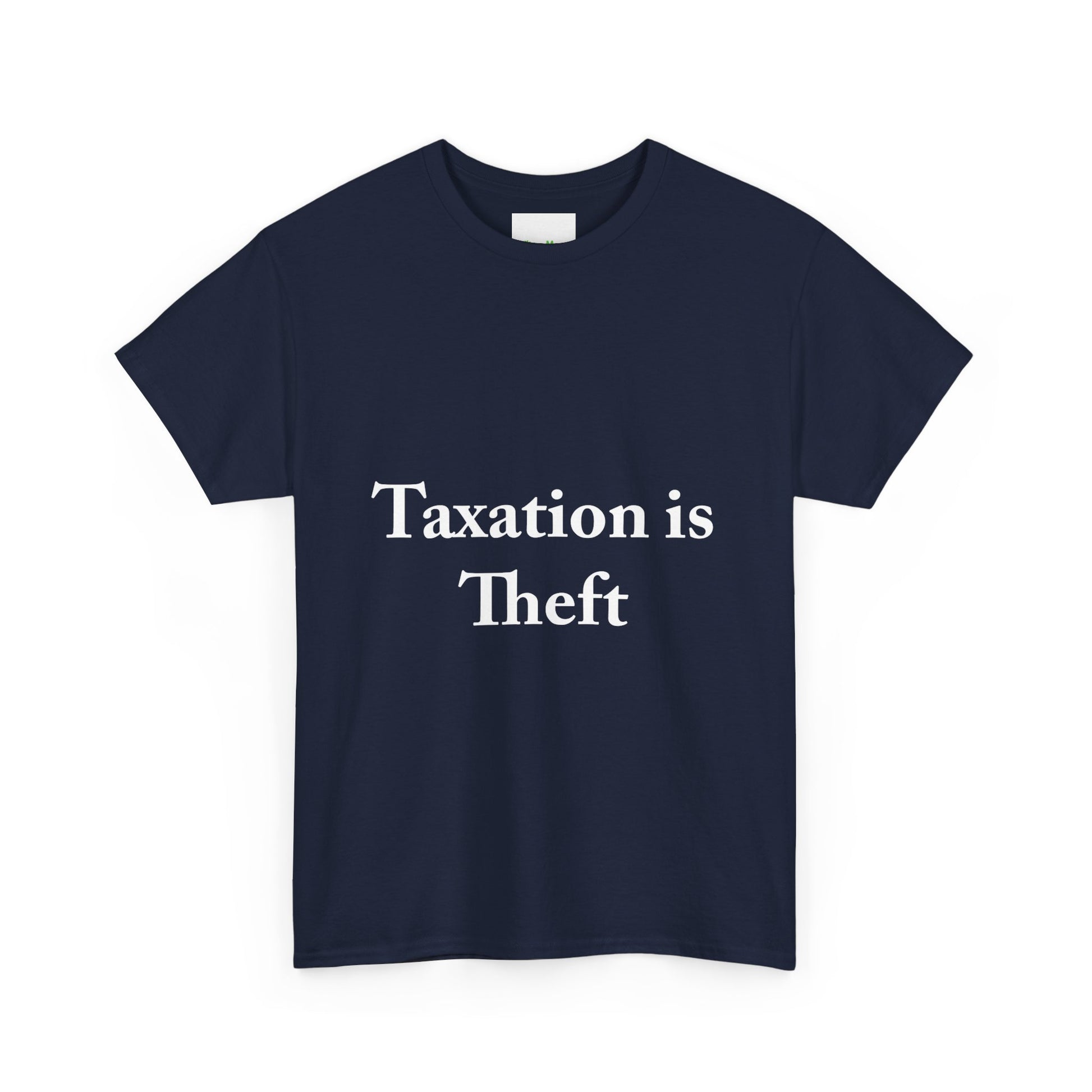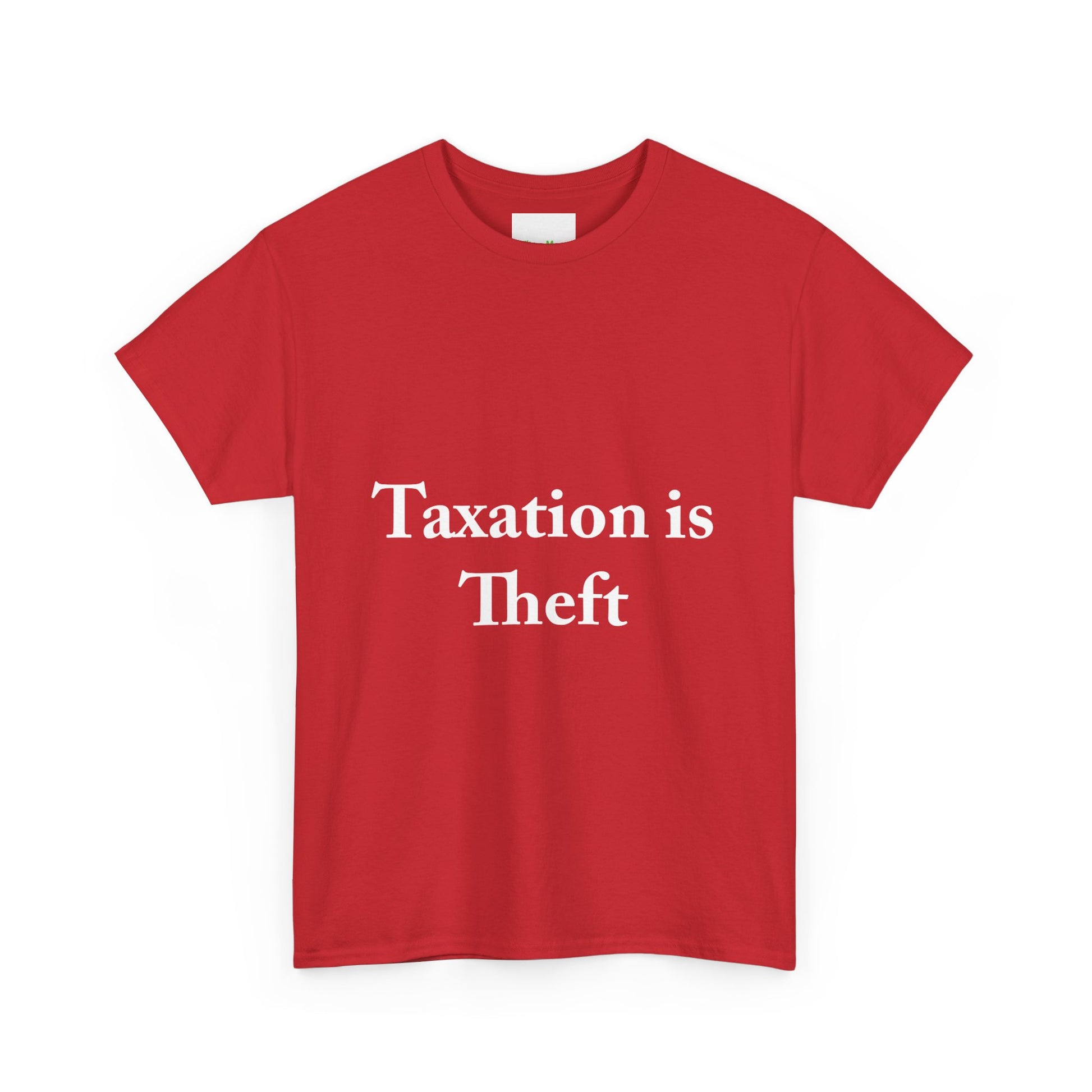 This Taxation is Theft T-Shirt exudes rebellion and individuality, perfect for those who hold strong political beliefs and activism. Ideal for everyday wear, protests, political rallies, or as a statement piece to spark discussions. Suitable for adults.
